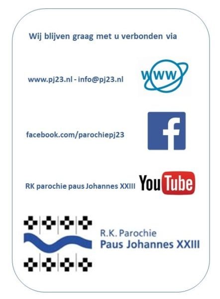 Wij maken deel uit van de grotere parochie Paus Johannes XXIII. Ook die parochie is actief in haar communicatie!